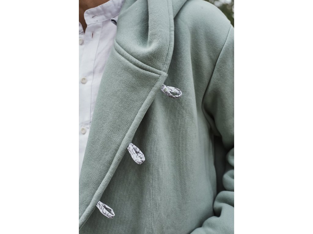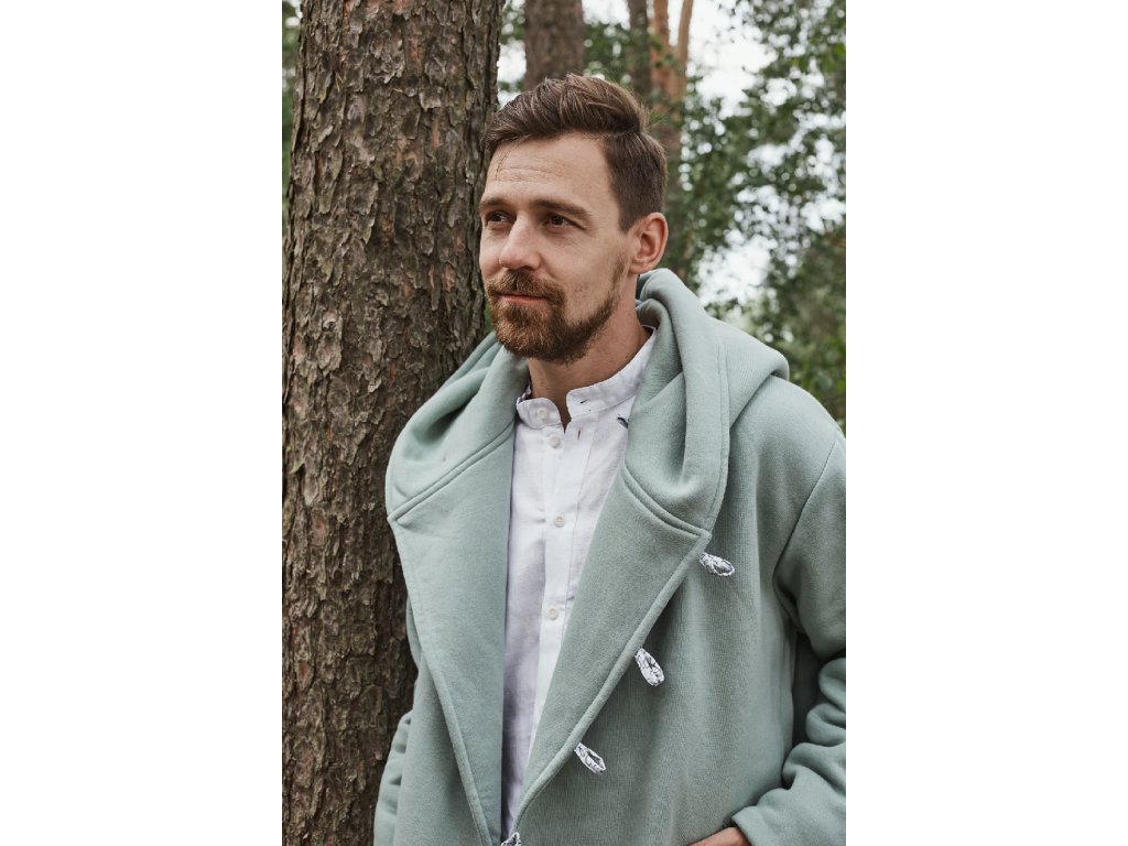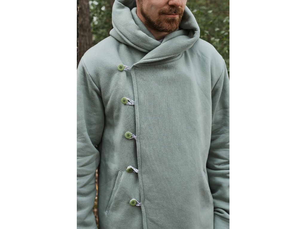 The sweatshirt is made from soft, brushed 100% cotton sweatshirt fabric. Button closure, cuffed sleeves. This material is very comfortable to the touch, warm, yet breathable.