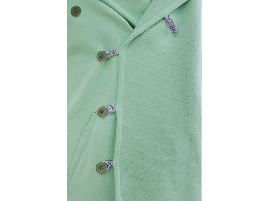 The sweatshirt is made from soft, brushed 100% cotton sweatshirt fabric. Button closure, cuffed sleeves. This material is very comfortable to the touch, warm, yet breathable.