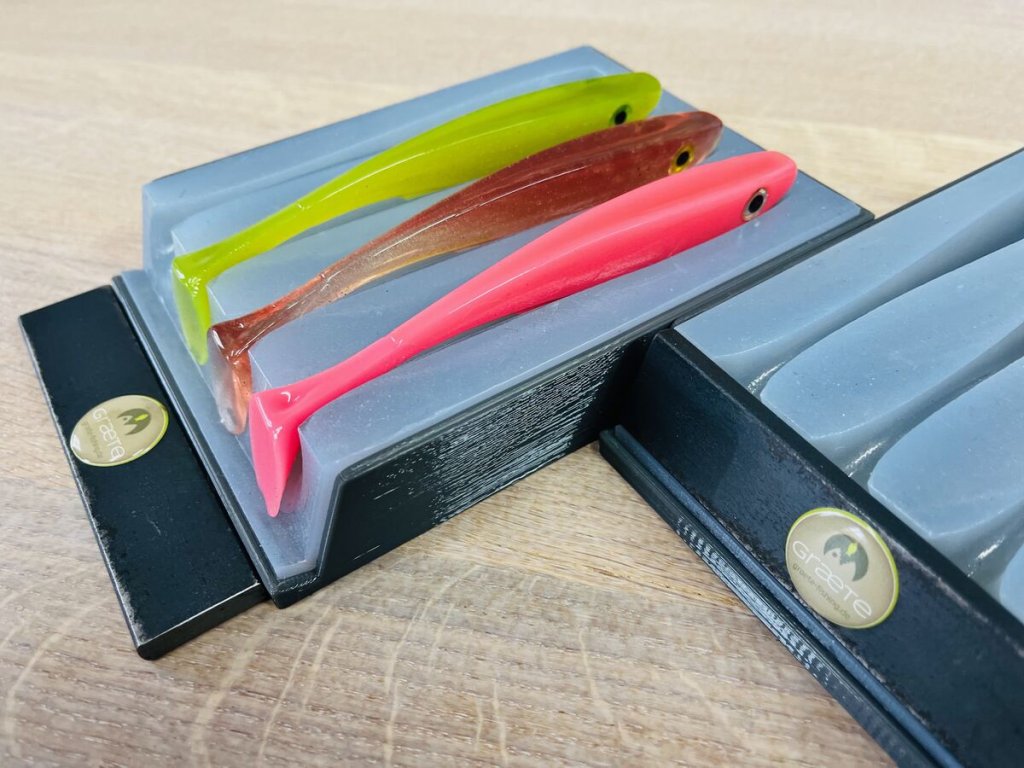 Nalévací silikonové formy GRÆTE jsou vyrobeny v Německu a vyznačují se nejvyšší kvalitou a přesností. Ať už si objednáte jakoukoli formu, hotová nástraha vám rozzáří oči! Forma je nalévací, nástrahy se ručně odlévají - nevstřikují! Forma je vyrobena z vysoce kvalitního silikonu připravená na odlití tisíců gumových nástrah. Díky perfektnímu zpracování formy se při odlévání netvoří bublinky, finální výrobky mají požadovanou kvalitu a vydrží déle.