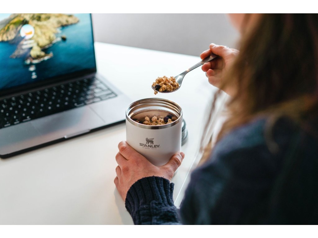 Ať už v pracovní den, nebo na dovolené, nádoba na jídlo STANLEY Adventure To-Go Food Jar vám ho na cestě uchová teplé nebo studené. Od makaronů se sýrem po čerstvé ovoce nebo ovesné vločky na noc - vaše oblíbené kousky budou připravené, kdykoli budete chtít. Dvoustěnná vakuová izolace a snadno uzavíratelné, nepropustné víčko se hodí k modernímu designu. Je tenká a snadno se drží, je to váš pomocník STANLEY - vezměte si ji všude, kam máte namířeno.