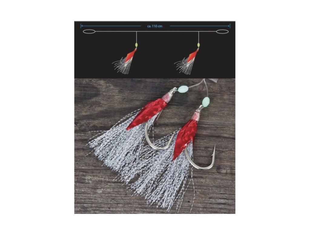 Extra stabilní pilkrovací systém. 2 háčky z niklu, imitace rybí kůže a pozlátko. Součástí balení je EVA Board - pěnová deska na návazce.