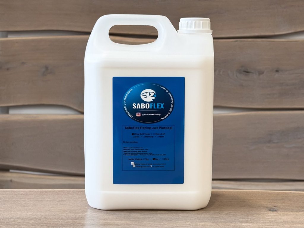 Tekutá guma je vyrobená z práškových termoplastických polymerů, lze snadno zpracovat při nízkých teplotách 170-180 stupňů, je téměř bez bublin a zápachu a je velmi detailní. Díky přimíchanému tepelnému stabilizátoru odpustí i občasné teplotní špičky přes 200 stupňů a hned se nespálí. Tomu je však třeba se vyhnout, abyste dosáhli co nejlepších výsledků - při více než 200 stupních jsou polymerní řetězce zničeny a roztrhány. Gumové nástrahy z plastisolu SaBoFlex lze rychle zpracovat a je plně vytvrzený do 24 hodin. Povrch velmi rychle schne a lze jej snadno upravit airbrush barvami nebo laminací. Tekutá guma SaBoFlex Fishing Lure Plastisol je 100% bez ftalátů!