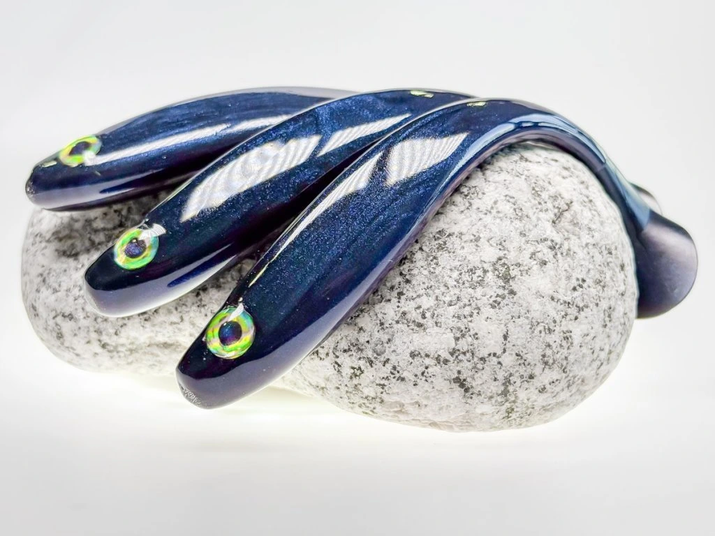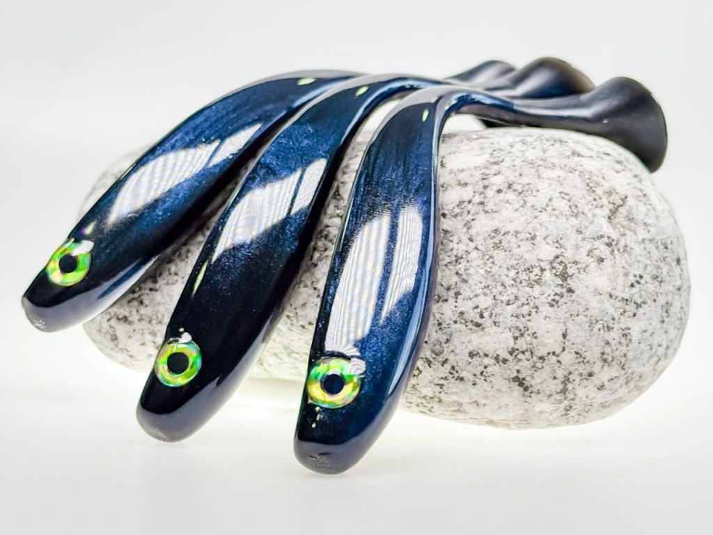Stejnou péči věnujeme i finálnímu začištění každé nástrahy. Po odstřižení od plastisolu každý odstřih ještě ručně zatavujeme, aby výsledek působil čistě, konzistentně a profesionálně. Právě tyhle drobnosti dělají na hotové nástraze rozdíl.