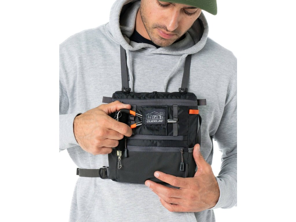 Guideline Experience Chest Pack je promyšlená a vysoce funkční náprsní taška, kterou si nastavíš podle toho, jak lovíš. Primárně ji připneš na ramenní popruhy brodicích kalhot (nezáleží na značce), ale při hlubokém brodění ji můžeš nosit i kolem krku díky nastavitelnému polstrovanému popruhu. Stejně snadno ji připneš k ramenním popruhům batohu Guideline, k zadnímu panelu vest Experience nebo k bedernímu pásu broďáků / batohu / ledvinky — a právě v tom je její univerzálnost.